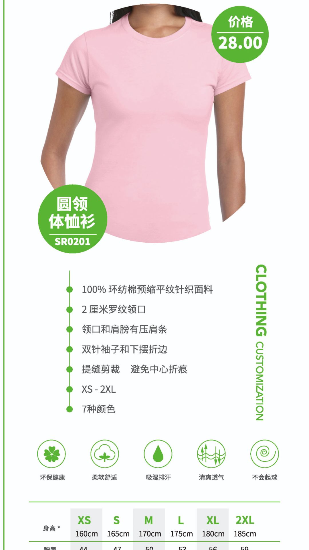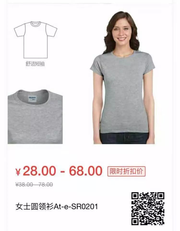 在 艾石 图文 首款 女士 圆领 衫S R0 20 1的 设计 上,设计 师采用了 修身 的 设 计, 既 能彰 显 魅力 , 也 环 保 健 康 , 同 样 支 持 加 印 l og o 或 者印 花 服 务。 (扫 码 即 可 在 线 订 购 )