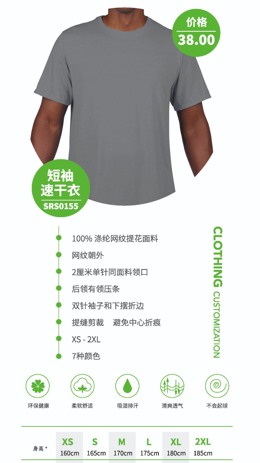 同 样,艾 石 图文首 款 圆领衫 S RS0 1 55, 柔 软舒适 , 吸湿排 汗, 清爽透 气, 环保健 康, 支持加 印lo go或 者印花 服务。 (扫码即 可在线 订购)